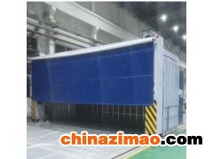 整個伸縮房由以下幾部分構成:門框架、帆布支撐網、剪式伸縮機構、阻燃pvc帆布、驅動機構等部分組成。門框架采用工業型材制成,是驅動電機直接帶動的部分,整個伸縮機構穩定運動的關鍵所在。大門框架上設置有開關按鈕并行程開關,用以自動控制大門的伸縮。除去門框,其余部位就是帆布支撐網,是阻燃帆布安裝連接的骨架,由多組型材骨架構成,并通過剪式伸縮機構將整個相對獨立的骨架連接在一起,形成一個穩定的整體。在每兩個帆布支撐網之間,采用剪式伸縮機構相連,其結構尺寸決定了伸縮量,同時為了***上下都能同時實現伸縮動作,在每側上下各布置一套剪式伸縮機構,兩者之間通過連桿形成一個同步運動機構。在整個網架之間采用工業阻燃pvc帆布,這是形成相對封閉作業間的“墻板”,也是***空氣有序流動的“房體”。安裝時每兩個支撐網采用一塊工業帆布。在噴漆室的大門上安驅動部分。驅動部分采用減速電機,傳動到多節長軸上,再由長軸兩端鏈輪同步傳動到兩側主動輪上。整個驅動前進、后退采用保護:雙向兩級行程保護軌道終端設置限位車擋;門柱上邊有控制盒,操作方便。