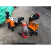 把切管機放置在水平的問題,并根據管子直徑的大小調整支架的高低。如果管子重量太重,建議直接在地基上打鉚釘,緊固住切管機,以防止在切割的過程中切管機移動。根據鋼管的粗細,把鋼管放置在切管機的不同滾輪上(100mm以及100mm一下的管子要放在切管機的好里面的兩個滾輪上)緩慢下壓油泵的手柄不要連續壓手柄。壓一下手柄,刀片向下大約前進0.5mm,