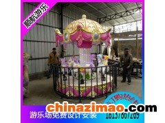 6座轉馬采用簡潔明快的金黃奶白色調為主題元素,非常受朋友們喜歡。6座轉馬轉馬的設計意向為騎馬緩步之浪漫境界。其運動型式為旋轉和上下起伏。馬的造型及色彩非常華麗,乘坐間一邊聆聽優美音樂,一邊舒緩旋轉起伏,好似騎馬緩步于空曠原野之上。