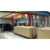 澆注后模具用輸送鏈推入初養(yǎng)室進(jìn)行發(fā)氣初凝,室溫為50~70℃,初養(yǎng)時(shí)間為1.5-2小時(shí)(根據(jù)地理有利條件,可免去此工藝),初養(yǎng)后用負(fù)壓吊具將模框及坯體一同吊到預(yù)先放好釜底板的切割臺(tái)上.脫去模框.切割機(jī)即對(duì)坯體進(jìn)行橫切、縱切、銑面包頭,模框吊回到運(yùn)模車上人工清理和除油,然后吊到模車上組模進(jìn)行下一次澆注,切好后的坯體連同釜底板用天車吊到釜車上碼放兩層,層間有四個(gè)支撐,若干個(gè)釜車編為一組。