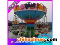 水果飛椅是我公司針對低齡兒童開發(fā)的小型移動式颶風(fēng)飛椅。它是以水果造型為主題,配合炫彩奪目的燈光,讓游客游玩時有種置身于水果樂園遨游的感覺。為適應(yīng)低齡兒童游玩,設(shè)備只作圓周旋轉(zhuǎn)運(yùn)動。乘客坐在西瓜型的安全座艙內(nèi),設(shè)備啟動后乘客將隨座艙作圓周旋轉(zhuǎn)運(yùn)動,讓乘客有種在空中飛翔、漂蕩的感覺。
