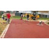 5、攤鋪、澆筑成型:透水混凝土屬于干性混凝土料,其初凝快,攤鋪必須及時。對于人行道面,大面積施工采用分塊隔倉式進行攤鋪物料,其松鋪系數為1.1。將混合料均勻攤鋪在工作面上,用括尺找準平整度和控制一定的泛水度,然后平板振動器或人工搗實。搗實不宜采用高頻振動器。最后用抹合拍平。抹合不能明水。