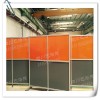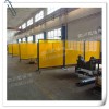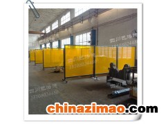 防護屏四周打孔置金屬吊環,使用尼龍扎帶固定在框架上,屏風配有移動滑輪,可任意移動方位,框架便于拆卸更換。