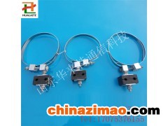 鴨嘴型、抱箍型、直角螺栓型等。根據桿徑標配:1.2米,1.5米.2.0米及以上長度優質不銹鋼鋼帶。