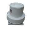 RTC風機采用電機殼體、葉輪排氣殼體、立柱、底座集流器、電機和離心葉輪,底座與集流器為一體,經過模具液壓成型,電機殼體、葉輪排氣殼體與底座集流器三者上下相鄰,使用立柱連接,電機安裝在電機殼體內,與離心葉輪直聯傳動,離心葉輪設置在葉輪排氣殼體內,包括輪板和安裝在輪板正面的葉片,輪板背面安裝有4個翅片,其特點是,電機殼體外表面上沖壓有多道防雨百葉。防雨百葉配合葉輪輪板背面安裝的翅片,使電機殼體內的空氣直接與外界空氣有了氣流流動的循環,有效地解決了屋頂風機中電機的散熱問題,可使屋頂風機長期高效運轉。 傳統屋頂風機采用鋼制或玻璃鋼制。鋼制屋頂風機重量大,在屋頂上就有一定局限性,而且震動大。玻璃鋼制的雖然重量輕但是壽命不長。可以說這款RTC是未來屋頂風機發展的大趨勢。 該產品還具有壓力高、風量適中、噪音低、耗電省、外形美觀牢固等優點。