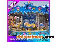 海洋轉馬自然海洋特色,讓人無限歡樂,海洋轉馬不再采用傳統的馬匹為造型,而是采用海洋生物如海馬,海豚,海蝦等等,新穎的造型自然吸引了一大批客戶,而且海洋特色基調更加好看,藍色的浪漫浸透在人們心中,自然吸引更多大小朋友前去乘玩。