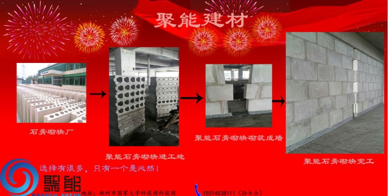聚能建材石膏砌塊是以石膏為主要原料,或加入各種添加料、外加劑、輕骨料,加水攪拌,澆筑成型,經(jīng)自然或人工干燥制成。具有自重輕,外形整齊、表面光滑、尺寸精確、體積穩(wěn)定,防火、保溫、隔熱、隔聲和耐久性能好、具有調(diào)節(jié)室內(nèi)環(huán)境濕度功能等特性。