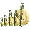 用途:適用于在直線桿塔上展放導線,鉗接管和銅絲連接器、旋轉連接器可以從槽內通過。