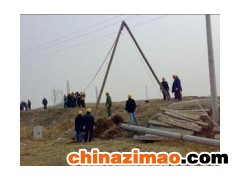 適用于:電力電纜敷設架線過程中,用于將電線桿扶立,起吊的作用,先由三腳架立桿機起吊電線桿,于75度后用人力或者設備推力將電線桿扶正。