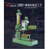 搖臂鉆床,也可以稱為橫臂鉆。主軸箱可在搖臂上左右移動,并隨搖臂繞立柱回轉±180°的鉆床。搖臂還可沿外柱上下升降,以適應加工不同高度的工件。較小的工件可安裝在工作臺上,較大的工件可直接放在機床底座或地面上。搖臂鉆床廣泛應用于單件和中小批生產中,加工體積和重量較大的工件的孔。搖臂鉆床加工范圍廣,可用來鉆削大型工件的各種螺釘孔、螺紋底孔和油孔等。搖臂鉆床的主要變型有滑座式和萬向式兩種。滑座式搖臂鉆床是將基型搖臂鉆床的底座改成滑座而成,滑座可沿床身導軌移動,以擴大加工范圍,適用于鍋爐、橋梁、機車車輛和造船,機械行業,等行業。