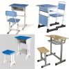 鋼塑課桌椅:鋼鐵及塑料結合作為產品的支架,同時用到三聚氰胺板來作為面板優點是平整、美觀、環保。不足的是不耐磨、不防滑、不防劃、不耐燙、不易擦洗、易褪色;