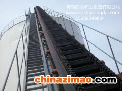 擋邊帶由基帶、擋邊和隔板組成,基帶外觀同普通輸送帶,但橫向剛度更大:擋邊為波浪狀:隔板按其不同的斷面可分為T型、C型和TC型。T型適用于傾角β≤40°場合,C型適用于傾角β>40°且物料流動性較好的場合,TC型適用于傾角β>40°,物料粘性較大,粘度較大的場合。