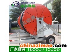 多功能型噴灌機用手扶拖拉機牽引,集定位式中遠程噴灌和行走式近程噴(滴)灌的優勢于一體,可用于農、林、牧、園藝各業進行噴灌、微噴灌、條狀滴灌、噴霧等多種作業,適應性強,應用面廣,尤其適合于丘陵缺水地區抗旱保苗節水灌溉。該機在手扶拖拉機的拖車尾部安裝了一套可調噴灑裝置,可進行8~10米寬幅農田噴灑作業。通過調節噴桿的離地高度適應作物的生長高度;噴桿可以豎立起來對高桿苗木、行道樹木等進行垂直噴灑作業,噴灑高度可達5米。噴桿可配置多種近射程噴頭、折射式噴頭,搖擺式噴頭、孔管式噴頭、多頭切向離心式霧化噴頭等。根據作業需要可進行組合配備,以獲得不同的噴射強度,從而滿足不同旱情的要求。另外,還配備了一只中射程旋轉式噴頭。在拖車上設置了一個容積為1.5立方米的水箱,當進行大流量噴灌時,一箱水約可噴7~8分鐘。機組在機耕道上行駛作業時,可將水箱裝滿;下田進行微噴作業時,只裝半箱水(約0.75噸),以防重載田間行走困難。