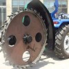 圓盤式開溝機專為30馬力拖拉機配套使用的新型開溝設備。它是在普通拖拉機上通過安裝超低速變速器實現低速緩行,從而使溝深上下統一,寬度左右勻稱。該機采用回旋式開溝器,開溝寬度為5-30厘米,開溝深度可調, 大開溝深度為100厘米,開溝速度每小時可達50—500米。所開溝形溝直、壁陡,溝深和溝寬統一,人工和挖掘機無法開出此溝形。主要適用于農田水利灌溉地地下管道,自來水管道及地下電纜鋪設等項工作的開溝作業。