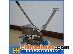 將鋼絲繩芯皮帶切割機雙向棘輪扳手的方頭插入減速器(或稱為力矩放大器)的方孔內,通過擺動雙向棘輪扳手,上部刀齒與下部刀盤的作用將皮帶和鋼絲繩割斷,中間會被割下一段寬約60mm的帶子,經過方向轉變裝置后,向下并向后排出。