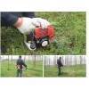 割草機又稱草坪機,由刀盤、發動機、行走輪、行走機構、刀片、扶手及控制部分組成。由平行四桿升降裝置,機架、左右單翼鋤草裝置,整機調偏裝置,梳齒旋轉圓錐齒輪增速傳動機構和梳齒仿型調深裝置組成;效率比人工鋤草提高8至10倍,傷苗率低,除苗清潔率高