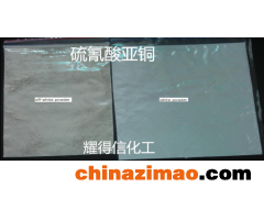 物化性質:白色或灰白色粉末,相對密度2.846,熔點1084℃,幾乎不溶于水,難溶于稀鹽酸、乙醇、丙酮,能溶于氨水及乙醚,易溶于濃的堿金屬硫氰酸鹽溶液中,可形成結合物,溶于濃硫酸即分解。在空氣中加熱至140℃以上可發火燃燒。干燥的硫氰酸亞銅在冷時能吸收氨而成合氨硫氰酸亞銅(2 CuSCN·5NH3)的加成物,加熱后放出氨。