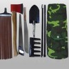 防汛組合工具包砍刀件套:含(鎬、鈀、鋤頭、十磅錘、砍刀、方鏟、電筒、警用分體雨衣、毛巾、水壺、頭盔)組合工具 十字鎬、釘耙、鋤頭、砍刀、方鏟、十鎊錘可以共用一條活動柄,有效快速實用,一柄多用。該組合輕便、工具配備齊全適用于救援隊員適用。
