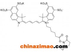 菁染料是近紅外熒光染料中常用的一類熒光染料,統(tǒng)的可見光染料相比有顯著的優(yōu)勢(shì)。由于細(xì)胞和組織的自發(fā)熒光在近紅外波段小,因此在檢測(cè)復(fù)雜生物系統(tǒng)時(shí),近紅外染料能提供更高的特異性和靈敏度。同時(shí),由于光波在近紅外區(qū)段的組織透過性更好。菁染料的摩爾吸光系數(shù)在熒光染料中是的,Cy5 hydrazide, Cy3 amine 和Cy7 NHS ester 的吸收在近紅外區(qū)背景非常低,是熒光強(qiáng)度、穩(wěn)定的長波長染料。特別適合于活體小動(dòng)物體內(nèi)成像代替放射性元素。