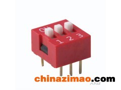 撥碼開關3位,2.54mm,180度紅色,立式直插凸柄