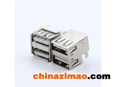 USB2.0連接器 雙層A母90度沉板 白色膠芯 卷口鐵殼