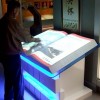 它是在展廳里放置一個按比例放大的實物書模型,并通過液晶電視或投影機投影成像方式在書模上呈現包括文字、圖片、聲音、圖像等多媒體信息的虛擬電子書。參觀者只需要站在書模前方,用手在空中揮動, 即可實現翻書動作, 并可對頁內內容進行點擊、查詢等操作??罩蟹瓡恼故拘问娇蓮V泛應用于博物館、展覽館、科技館、企業展廳、圖書館等,或者是一些服務行業的公共場合,進行導覽、導購、業績展示、廠史展示等。