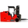 使用自主研發的大噸位轉向橋機構,并已獲得專利權,使得轉彎半徑更小,承載力大,轉向更輕松。與同噸位內燃平衡重相比,與同噸位內燃平衡重相比,具有軸距小、轉彎半徑小、低重心、具有極佳的轉向穩定性、機動性;采用大容量蓄電池,使得續航能力更強;獨有的雙泵合流液壓系統,能量消耗小,維護成本低,自動無級調速油泵驅動控制系統,更節能、噪音小、延長電機壽命;采用高性能聚胺脂材料特制車輪,承載力大,變形量小;采用進口集成電控系統,技術成熟可靠;采用多盤濕式制動器,無磨損和全封閉,即使在灰塵和潮濕的環境中也能保證較長的壽命,免維護;采用儲能液壓制動系統,制動力矩大、制動更可靠、更安全、更輕松;采用交流驅動電機,噪音小,免維護,充分利用交流電機的特性,再生制動,再生能源回收;采用電磁制動器作為駐車制動,加速器釋放控制,制動自動生效,保證叉車在坡道工況下的安全;貨叉采用液壓操作微動調距,更安全、更輕松、更準確。