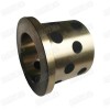 該產品屬于滑動軸承系列,其法蘭的結構使軸向定位變得簡單,更經濟。降低軸承摩擦扭矩、提升其高剛性及良好的回轉精度。在高力黃銅(主要化學成份 Cu Al Mn Fe Ni Zn 百分比分別為:60~66% 5.0~7.5% 2.5~5.0% 2.0~4.0% 0.2~0.5% 22~28% .)的基體上,鑲嵌石墨或MoS2固體潤滑劑的一種高性能固體潤滑產品。它突破了一般軸承依靠油膜潤滑的局限性。在使用過程中,通過摩擦熱使固體潤滑與軸摩擦,形成油、粉末并存潤滑的優異條件,既保護軸不磨損,又使固體潤滑特性永恒。這類軸承的優勢在免維護性和高承載能力,特別適用于重載作用在軸承的一側并且只是擺動運動的工況