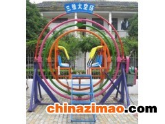 【三維太空環】簡介:乘坐三維環游玩者體會到三維立體空間自由旋轉的特殊感受 三維太空環視頻,放松全身肌肉,不是在一個平面上,而是在一個固定的立體空間里旋轉,既鍛煉身體又趣味無窮。為了方便更多的游客乘坐我廠又定制了專供較小的孩子乘坐的三維環。