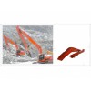 我公司長期供應挖掘機標準臂、巖石臂、兩段式、三段式加長臂、伸縮臂等,產品采用先進的計算機2D、3D輔助設計系統設計,并經過設計系統進行挖掘機實際動作模擬,確保了產品的準確性及可靠性,設計工程師通過實際應用知識和經驗,從應力分析、材質選擇、技術和工藝、設計制作等方面保證了產品的結構強度、使用性能和質量,臂內安裝有內部緩沖板以承受張力負載,經久耐用,延長了挖掘機標準臂、挖掘機加長臂、巖石臂、伸縮臂的使用壽命。。可根據客戶要求設計生產各種二段式、三段式加長臂,巖石臂,伸縮臂。二段式主要適用于土石方基礎和深塹挖掘作業;三段式主要適用于高層建筑的拆解等工程;巖石臂也叫鷹嘴臂,一般用于礦山、巖石地質的挖掘應用;伸縮臂分為滑移式伸縮臂(滑臂)、套入式伸縮臂(套臂),滑臂通過伸縮缸及滑塊的作用使移動體在固定體上“滑移”一般都用在深坑作業的挖掘機上,套臂又稱內藏式伸縮臂,其結構是第一段為固定體,其余的都是移動體,所有的移動體都裝在固定體內,其原理是一段接二段、二段接三段......再通過行程油缸來使其伸出或縮回的形式,一般用在深坑或高空作業的挖掘機上。